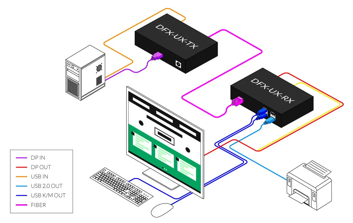 | DFX-UX-S | DisplayPort and USB 2.0 via Dual Fiber Extender. Includes: [DFX-UX-TX-S, DFX-UX-RX-S, 2 X (PS5VD3A)] |