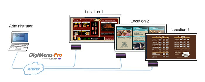 With the DigiMenu-Pro, users can control the contents of one screen from anywhere in the world over the internet. Add new content, like promotions and menu items, at any time and without hassle. Users can even run multiple units in various locations via the DigiMenu-Pro’s intuitive signage management software interface. Easy and efficient!