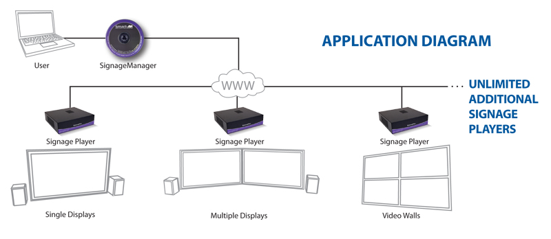 • Manage an unlimited number of signage players from anywhere in the world