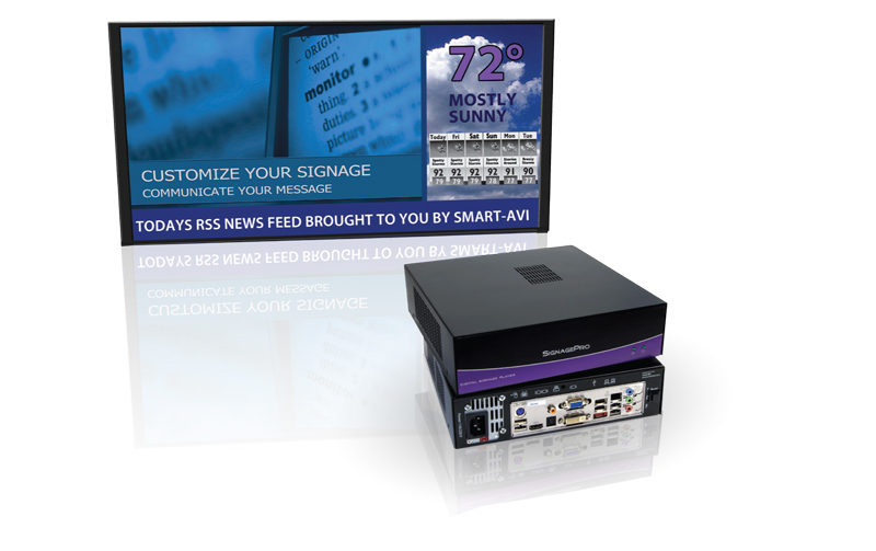 • Once connected to the display monitor, the client only needs an Internet connection for updating or you choose to have a live RSS feed as part of your presentation.