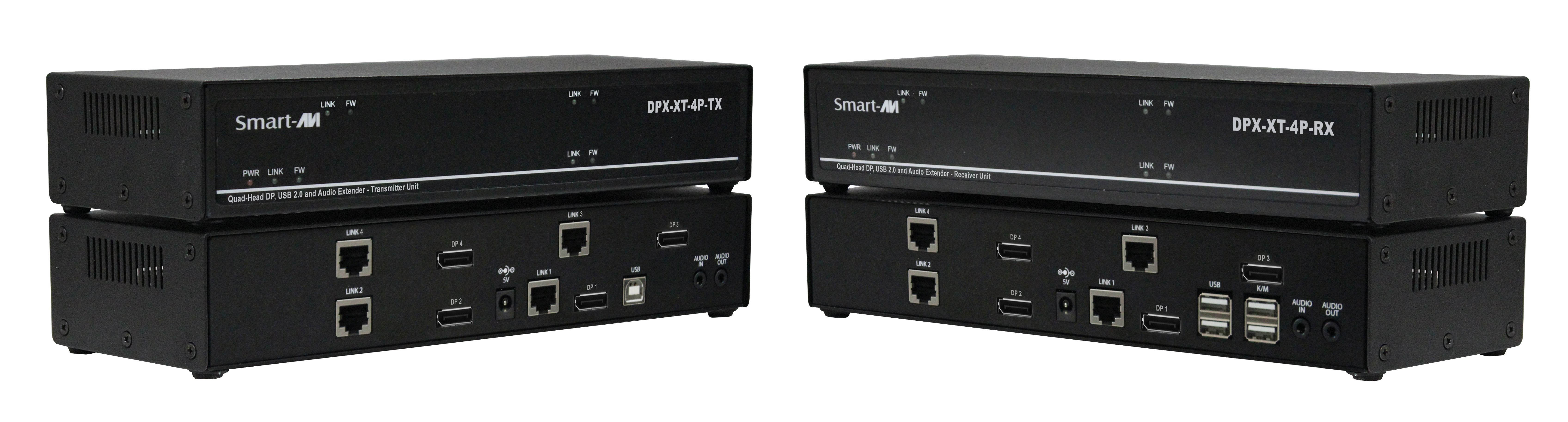 DPX-XT-4P-SQuad Head DisplayPort, USB 2.0, Audio, CAT5/5e/6 Extender.