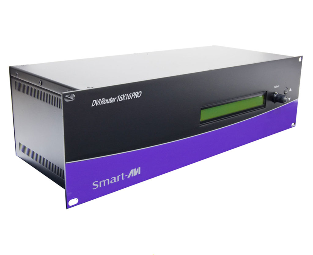 The DVR16X16Pro non-blocking digital video matrix switch is capable of switching and extending between 16 DVI-D sources and 16 displays up to 200 feet away over CAT6 STP. It can controlled directly or remotely, using RS-232 commands, IR, USB or TCP/IP. This matrix is controlled by Windows®-based software that is simple to use – a cornerstone of all SmartAVI products.