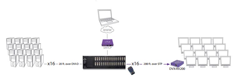DVR16X16PROSDVI-D 16×16 Router/Extender over CAT6 STP [DVR16X16PRO (SM-CSW) & (CCPWR06US)]