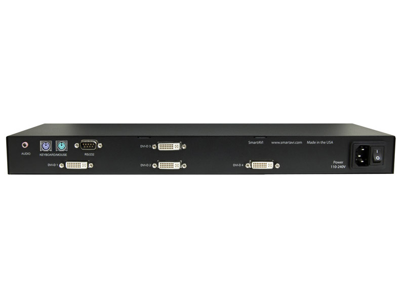 • Quad channel DVI-D, audio and PS/2 keyboard and mouse with RS-232 control