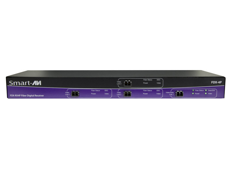 The FDX-M4U consists of a transmitter and receiver that extend four DVI-D outputs, with audio, USB keyboard and mouse, and RS-232 control. For exceptional quality and security, fiber optic extension is the best solution. The FDX-M4U can go the distance with multi-mode fiber optic cabling with a reach of up to 1,400 feet.