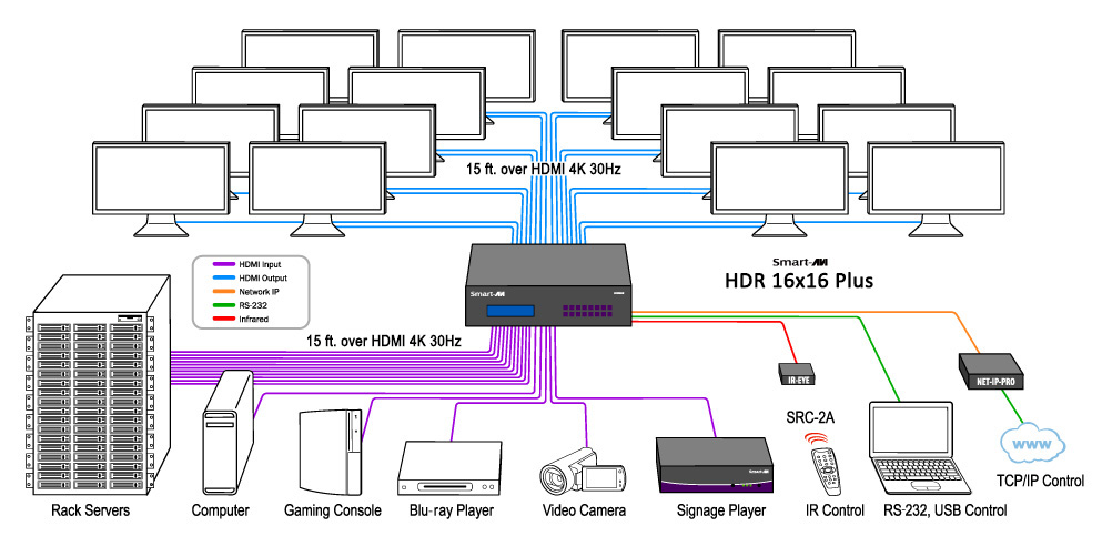 Discontinued. 4K 30Hz Ultra-HD 16×16 HDMI Matrix: display content from 16 sources on 16 displays in stunning 4K resolution.