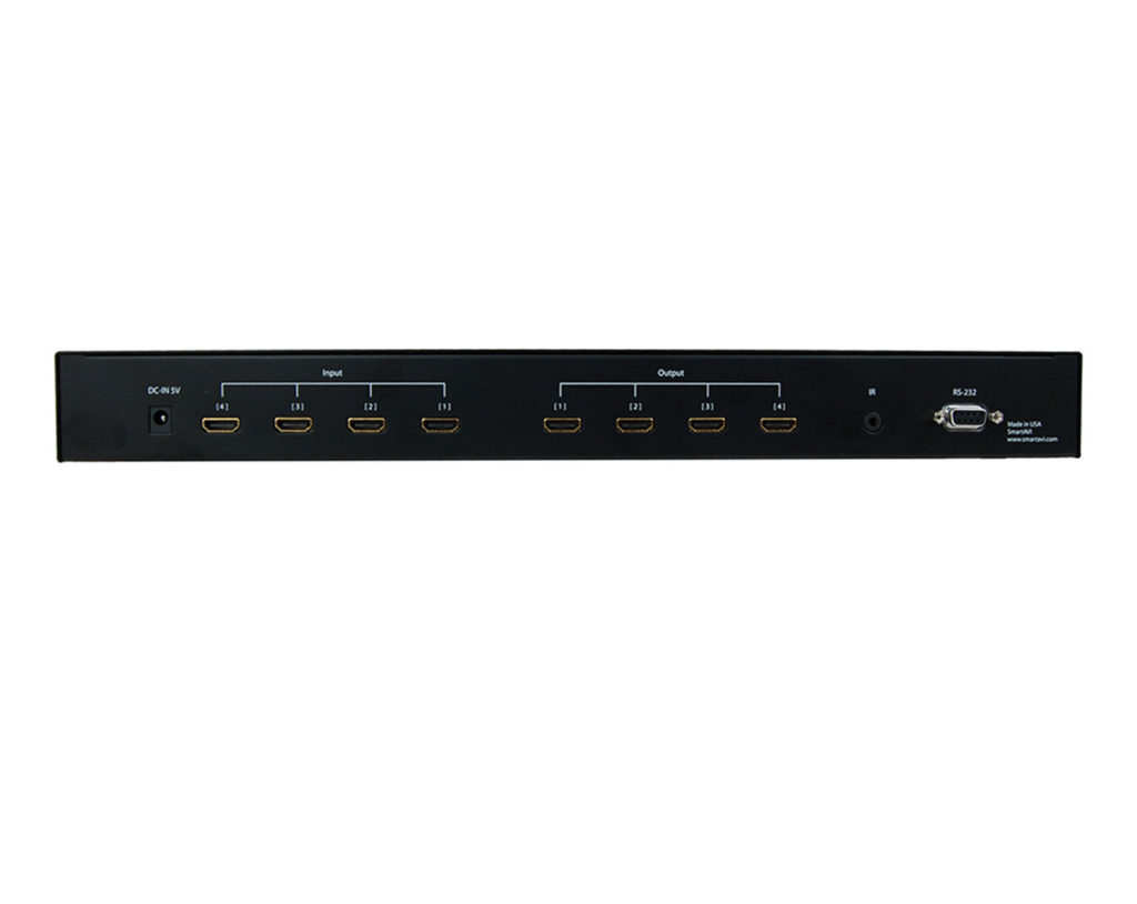 - 4×4 non-blocking, single-link HDMI matrix switch