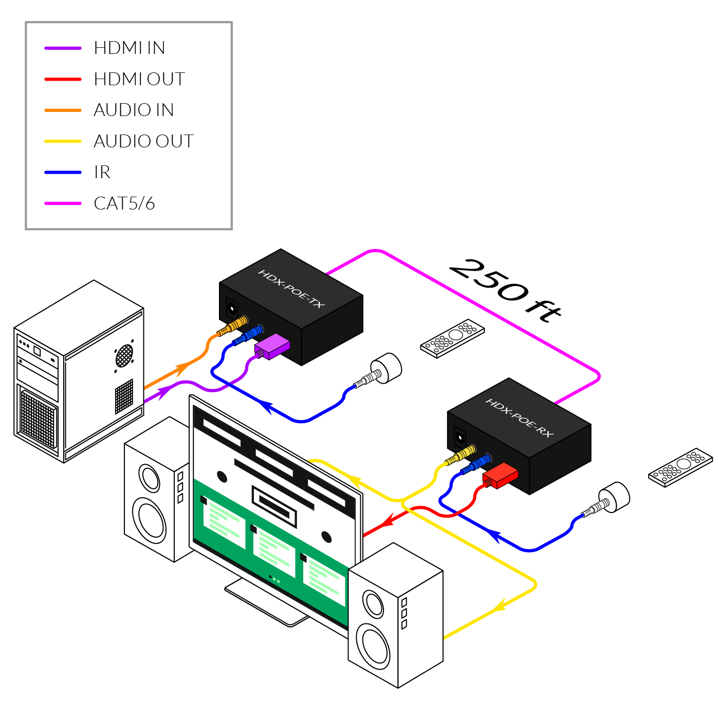 HDX-POESHDMI & IR Extender over a Single Cat5e/6 Cable Includes: [HDX-POE-TX, HDX-POE-RX and (PS12V2.5A and Wall Mount)]
