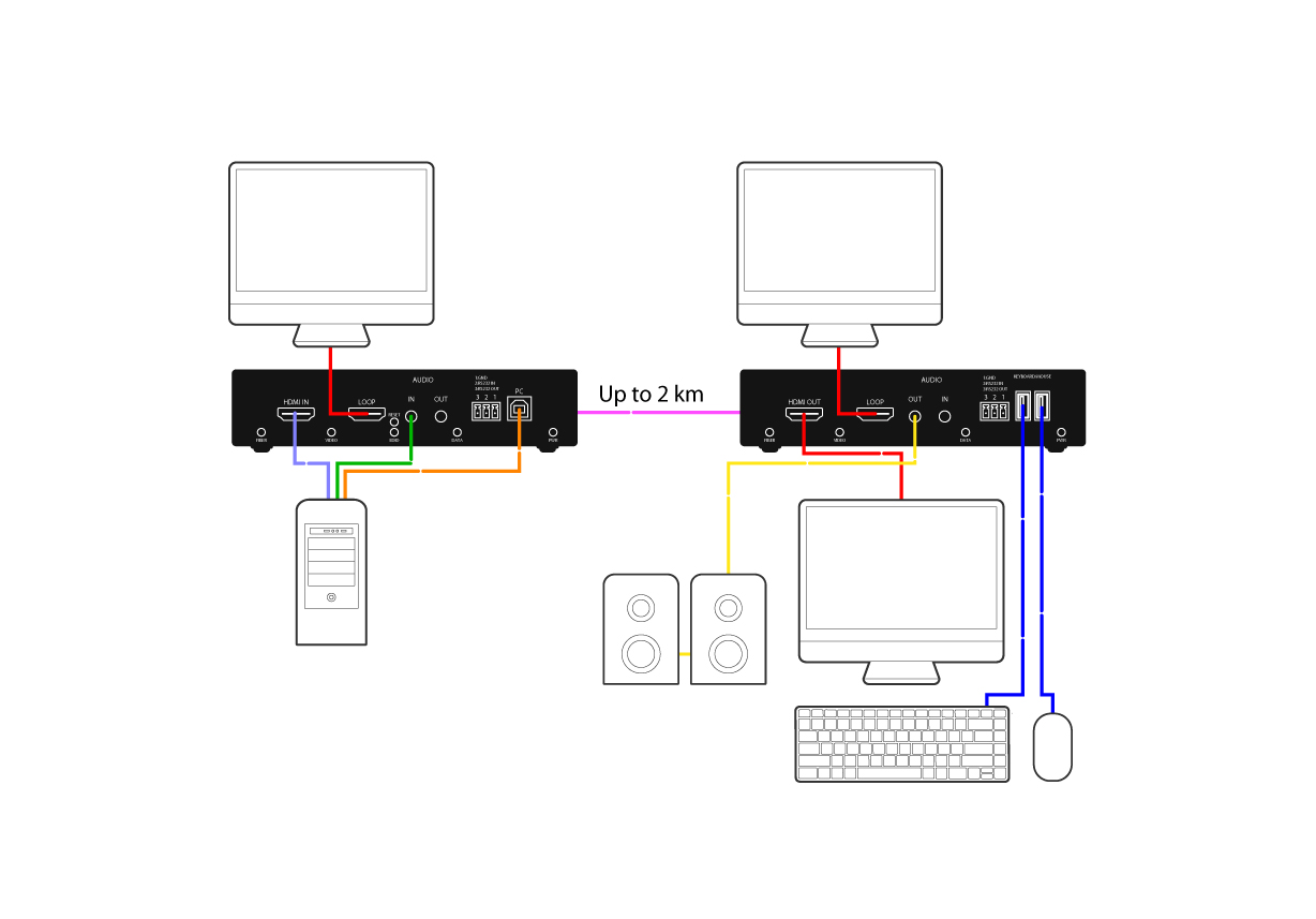 | HFX-KM-S | HDMI, USB, Audio via Single Fiber Extender. Includes: [HFX-KM-TX-S, HFX-KM-RX-S, 2 X (PS12VD1A-DSKTP)] |