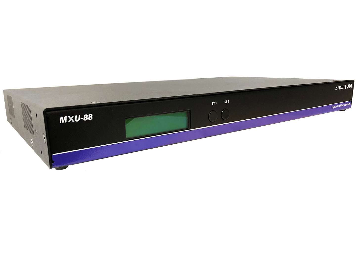 The MXU-88 is an 8×8 4K HDMI and USB 2.0 matrix switch: it allows up to eight users to control & share any eight remote computers from USB 2.0 equipped workstations with 4K-compatible HDMI displays. Perfect for control rooms or group video editing suites, the MXU-88 excels at expediting workflow by offering control of remote systems via USB peripherals like keyboards, mice, and more with the advantage of 4K-ready HDMI display support.