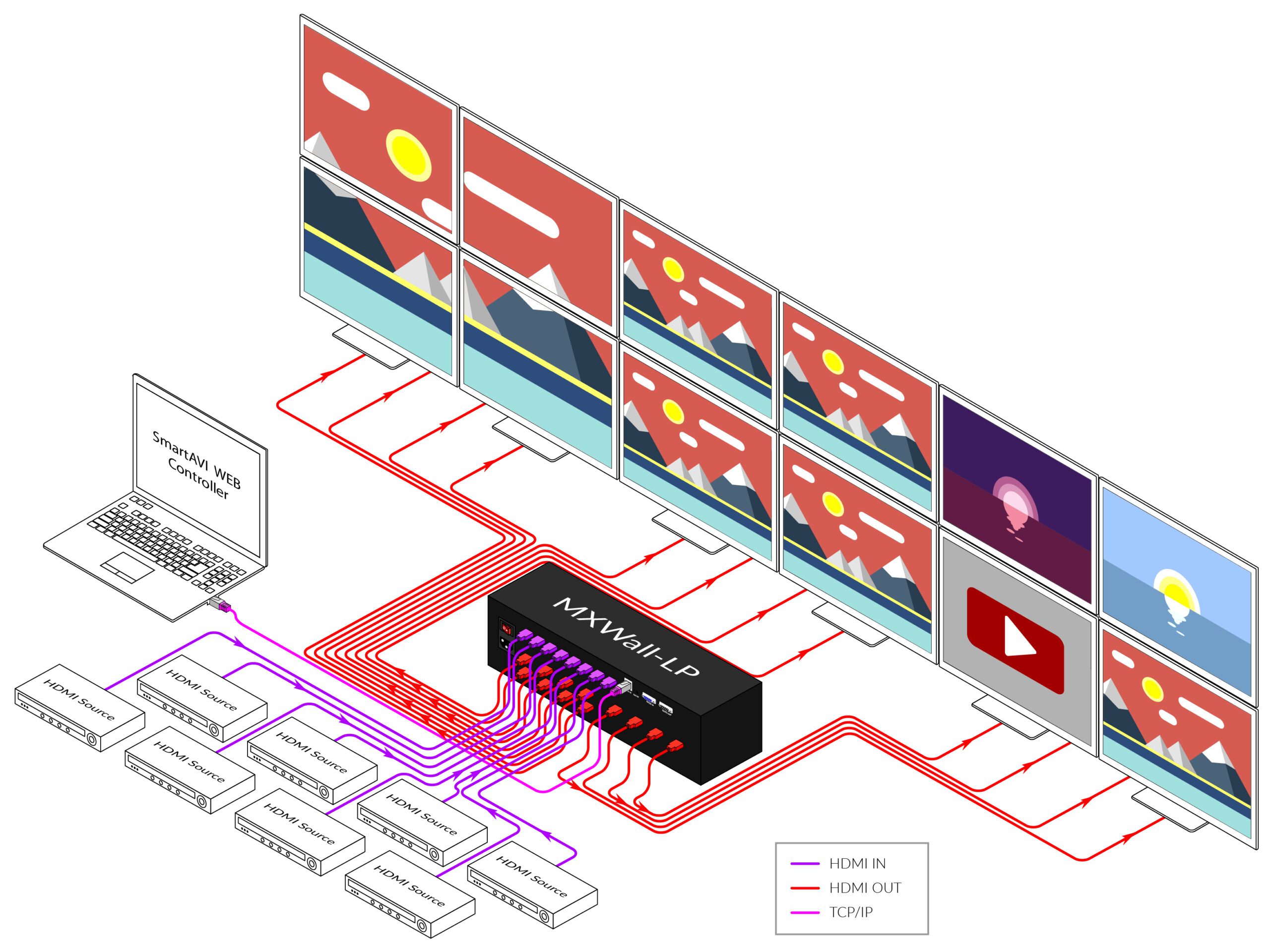 Its compact design and powerful processing make the MXWall-LP an excellent solution for any video wall installation. Plug-and-play enabled, the MXWall-LP is immediately ready for use as soon as it is connected to an AV setup—no additional drivers or installers required. Its exceptional hardware delivers stunning video wall displays in environments such as retail spaces, educational facilities, conference rooms, command centers, event halls, entertainment venues, airports, and more.