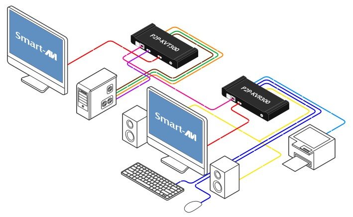 Extend, control, and manage your HDMI-based workstation over IP with the P2P-KHR300. Supporting flexible Direct, Matrix, and SaviGate modes, the P2P-KHR300 adapts to your installation needs — from simple point-to-point extensions to full multi-user managed environments — over CATx or Fiber.