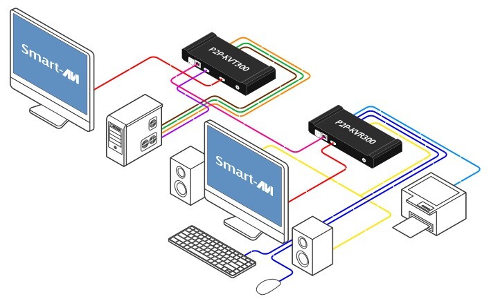 Extend, control, and manage your DVI-based workstation over IP with the P2P-KVT300. Supporting flexible Direct, Matrix, and SaviGate modes, the P2P-KVT300 adapts to your installation needs — from simple point-to-point extensions to full multi-user managed environments — over CATx or Fiber.