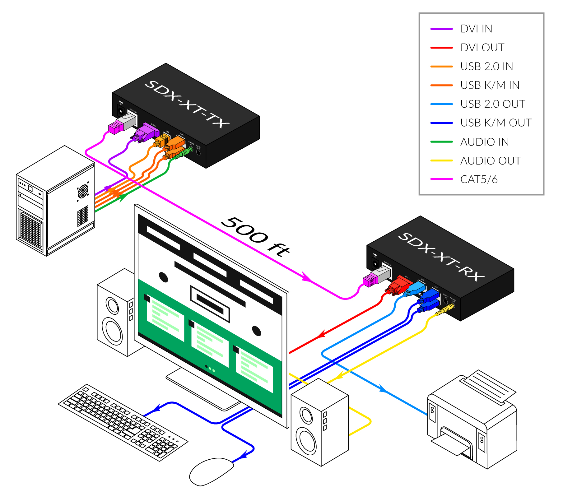 - Extends DVI-D up to 500 feet from the source