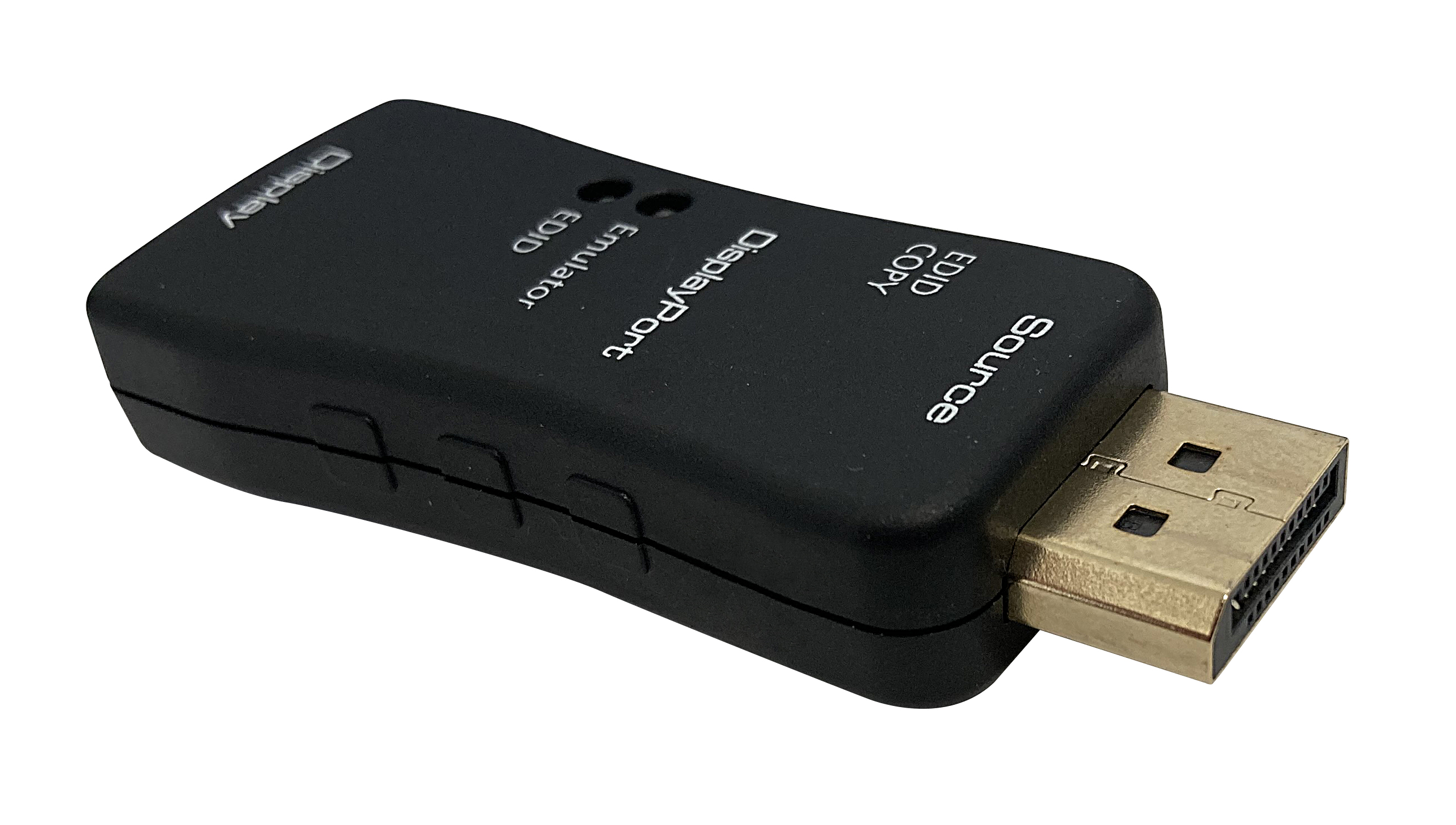A DisplayPort EDID emulator that captures and stores a monitor’s EDID so the source device always detects the correct display capabilities. It supports DisplayPort 1.1/1.2 and resolutions up to 3840×2160 @ 30 Hz, and draws power directly from the DisplayPort source — no external power required.