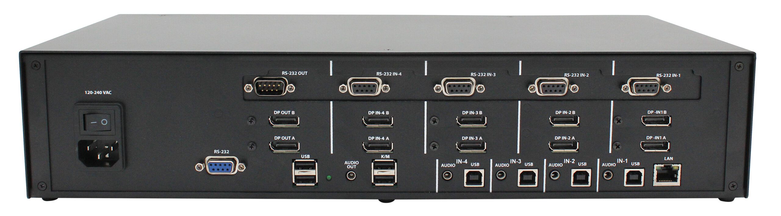 • Front panel buttons for manual port selection.